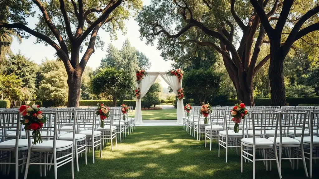 A romantic garden wedding setup.